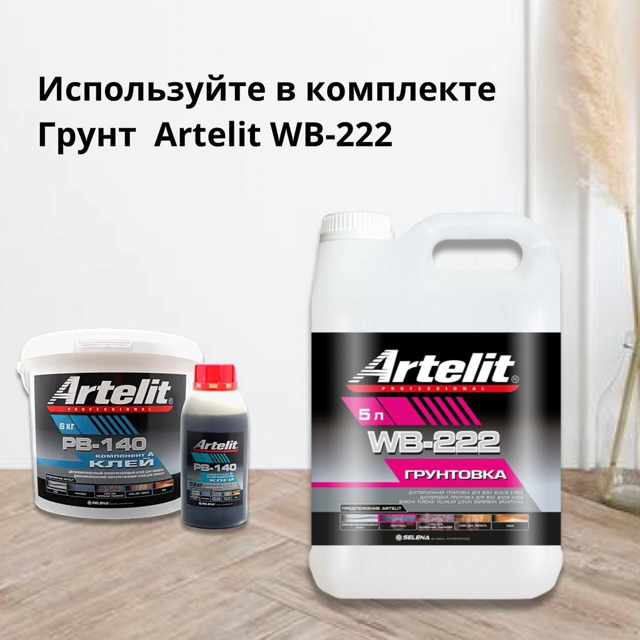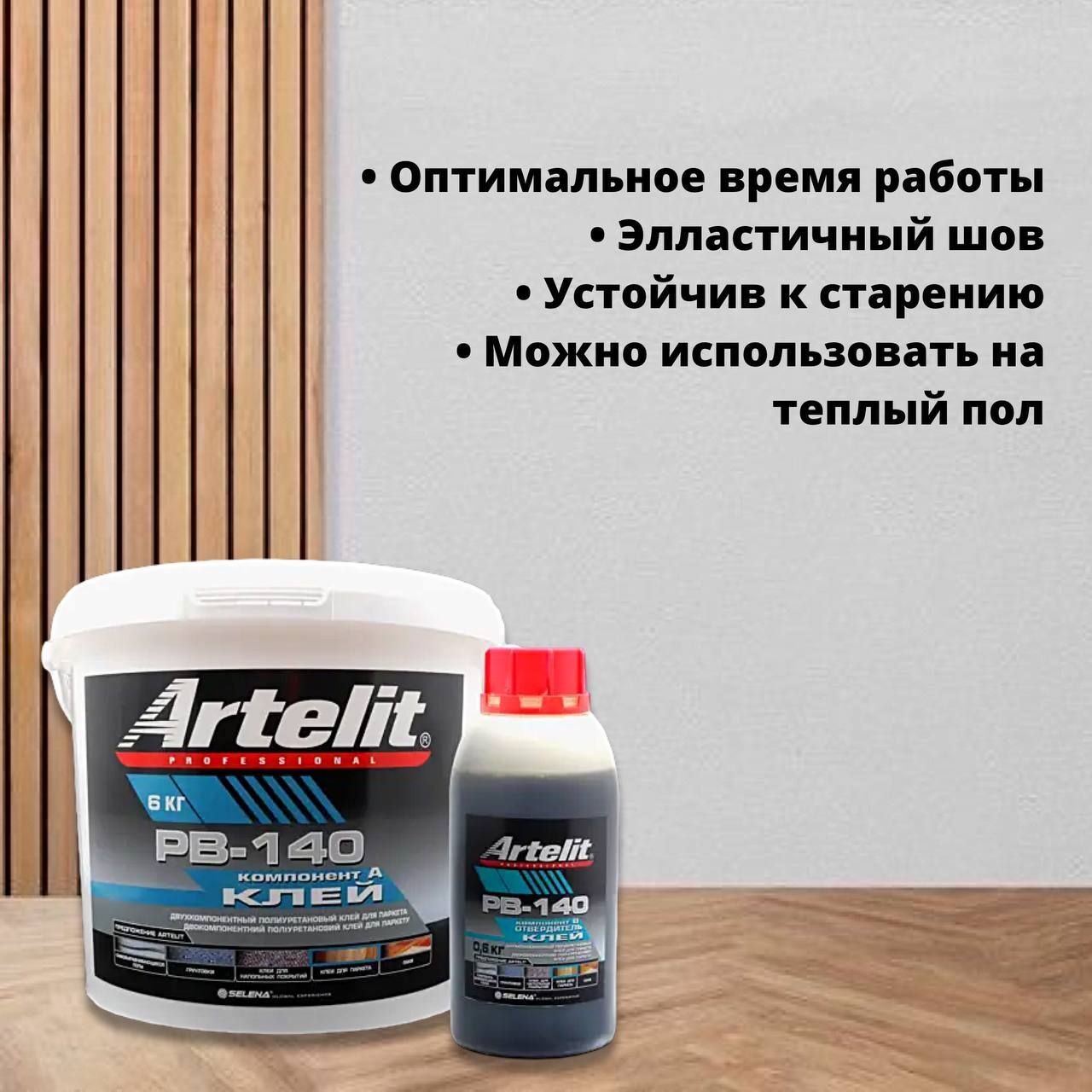 Двухкомпонентный полиуретановый клей для паркета Artelit PB–140 (6 кг) не содержащий растворителей и воды.