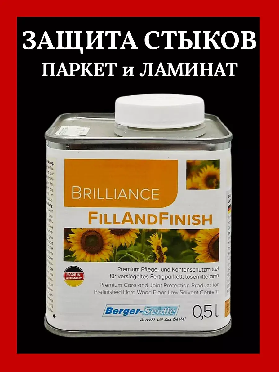 Полироль Brilliance Fil-and-Finish был специально разработан для защиты стыков лакированного в заводских условиях паркета и паркетной доски. Он препятствует проникновению воды при влажной уборке в зоне торцов и по длине шва. Продукт на основе из модифицированных растительных маслах и восках. Filand-Finish отличается от предыдущих, содержащих воск продуктов не только более низким
